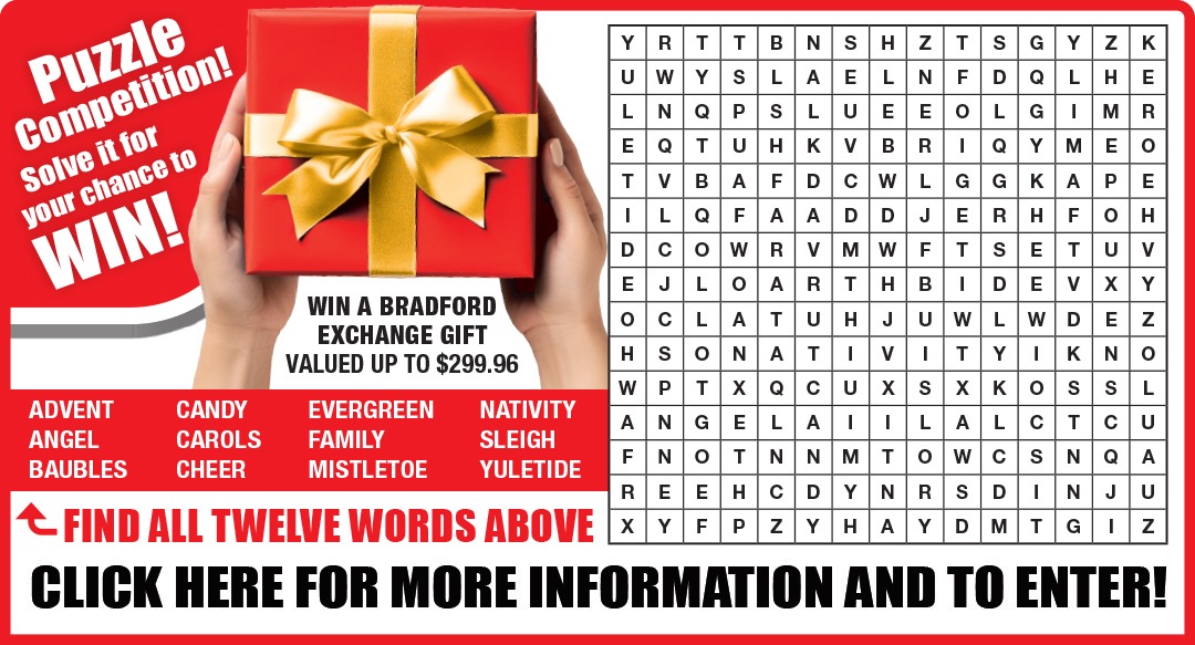 T&C: The winners name will be announced in our next catalogue on page 19. Answers to previous quizzes can be found at: www.bradford.com.au/puzzles Answers for this competition and this month’s winner will be drawn and notified in October. Winners have one week to respond. If the winner does not respond The Bradford Exchange has the right to redraw.